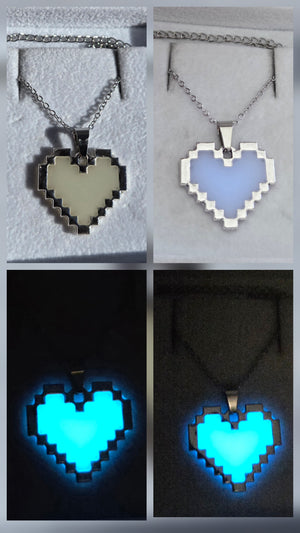 Pixelhjärta halsband som lyser i mörker – självlysande smycke i rostfritt stål